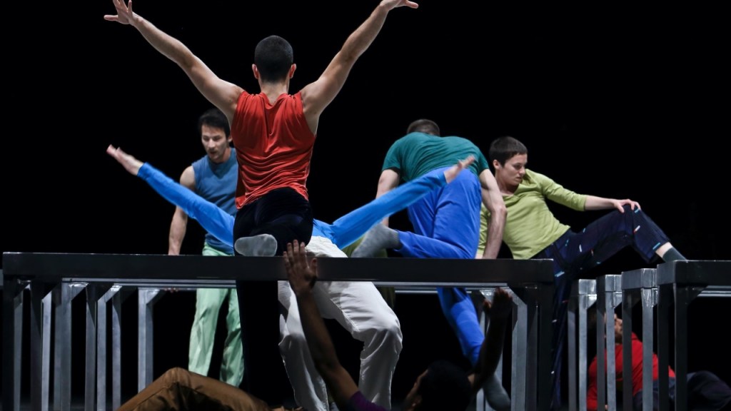 One Flat Thing, reproduced de William Forsythe. Les danseur.se.s évoluent au milieu de tables, jouent, dansent avec elles. C’est impressionnant de maîtrise. Superbe. On avait déjà vu ce ballet il y a quelques années, un classique admirable.