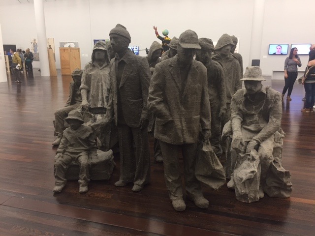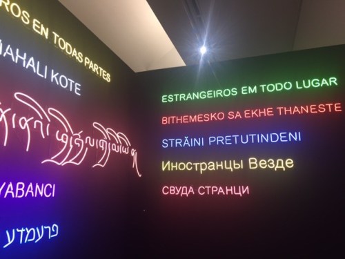 Visite de l’expo Tous des sangs-mêlés avec une performance de Esther Ferrer « questions aux français » assez space. Les passagers du silence de Karim Ghelloussi ci dessous.