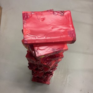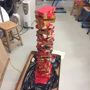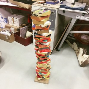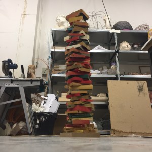 Ma pile tient debout, il me manque un livre pour mettre sur le dessus ! Je commencerai la peinture la semaine prochaine. Je suis contente, ça tient debout 😉