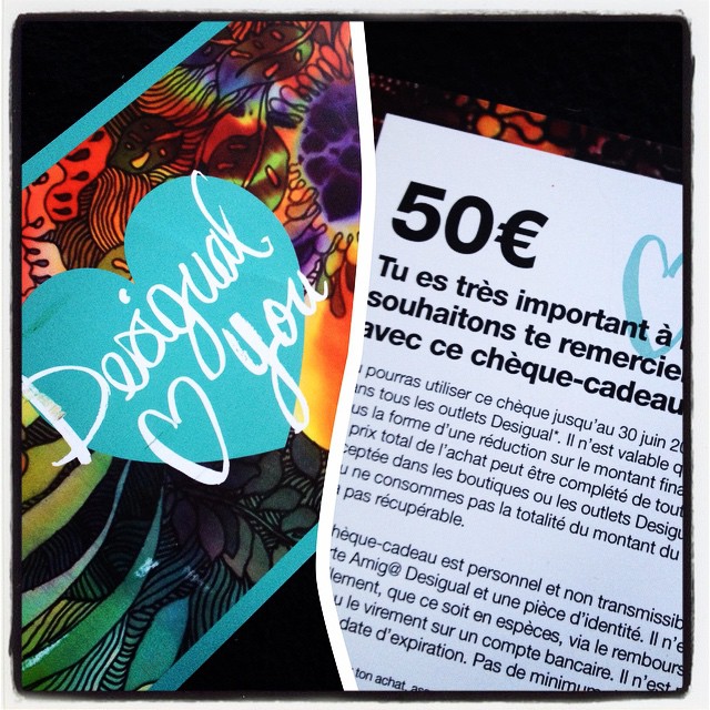 Mercredi 11 # Jour 42 : Desigual me remercie de ma fidélité avec un bon d’achat… Trop contente…