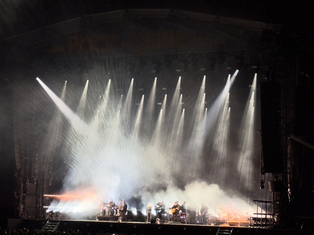 Retour dans un univers plus intimiste avec PJ Harvey. Une présence, une voix, des sons uniques, je suis toujours impressionnée par la qualité et l’originalité de ses prestations. Que d’émotions. Le fond de scène est superbe, sa robe magnifique, personnalisée par tout le groupe si j’ai bien compris. Il faudrait que j’aille la voir dans une petite salle, cela doit être encore plus fort. Ecoutez PJ Harvey, sa musique vous emportera…