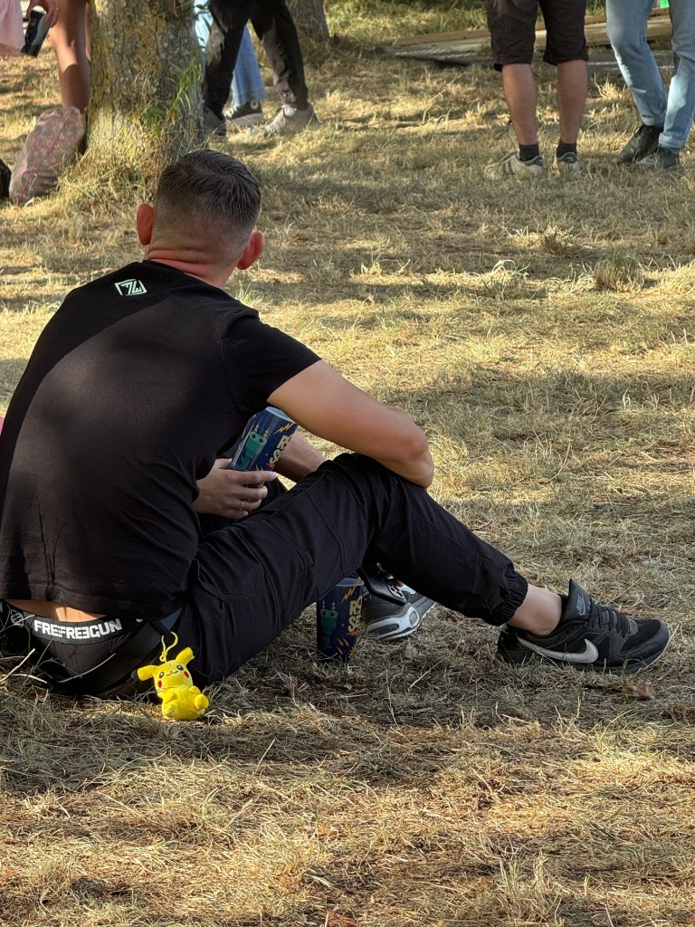 Ensuite on a écouté, allongé.e.s dans l’herbe (les garçons restent avec moi car JL n’a pas pu venir, il travaille sur la cérémonie des JO) donc on a écouté Olivia Dean, une anglaise et j’ai bien aimé. Une belle voix, de la soul avec pleins d’instruments dont des cuivres qui donnent tant de force, un joli set.