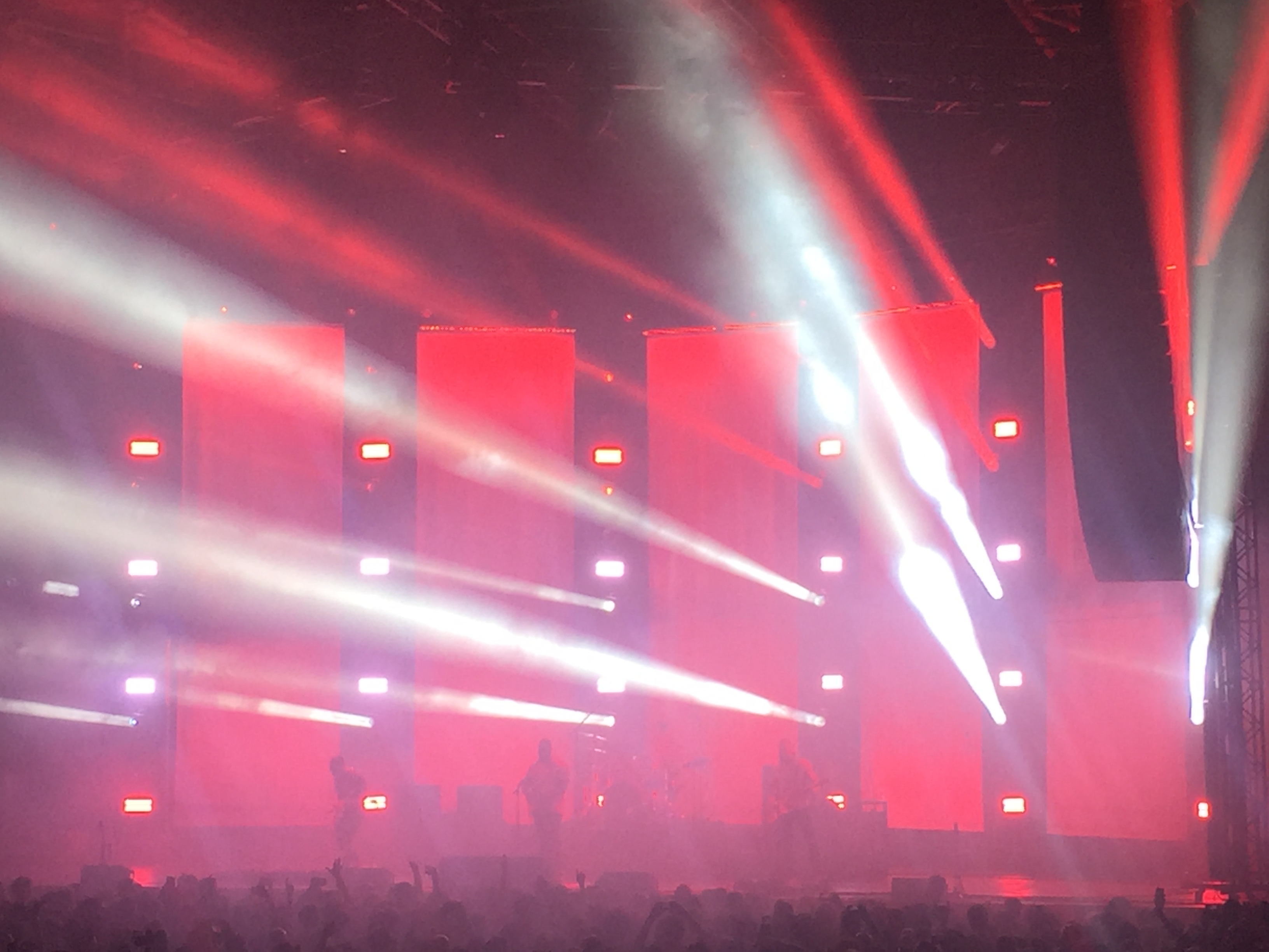 Et pour le coup on était mal placé car la déco de scène n’était pas du tout adaptée pour les places en haut et loin ! Il y a avait une boite géante qui recouvrait la scène puis était au dessus servant d’éclairage par moment… Mais elle nous cachait les 2/3 de l’écran géant… 😦