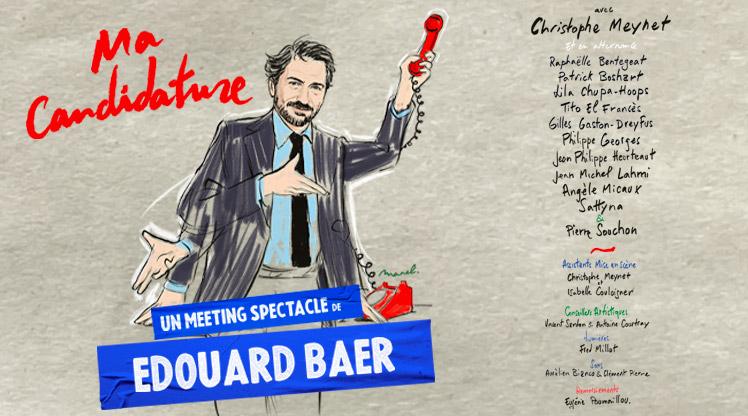 Je n’ai pas résisté au nouveau délire d’Edouard Baer, il entre en campagne pour les élections. Il a écrit son programme. Il nous offre son premier meeting, un nouveau concept.