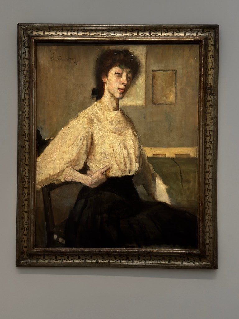 Le 1er portrait est de Gerda Wegener, c’est le portrait de sa femme transgenre Lili Elbe, caractéristique des années folles (1922). Lili Elbe est une pionnière des droits des personnes transgenres. Coup de coeur pour ce portrait.