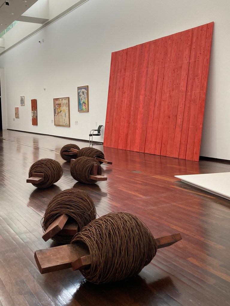 Le travail de Bernard Pagès, ici assemblage bois et fer oxydé, j’aime beaucoup ce qu’il fait. Et l’oeuvre rouge en fond ❤