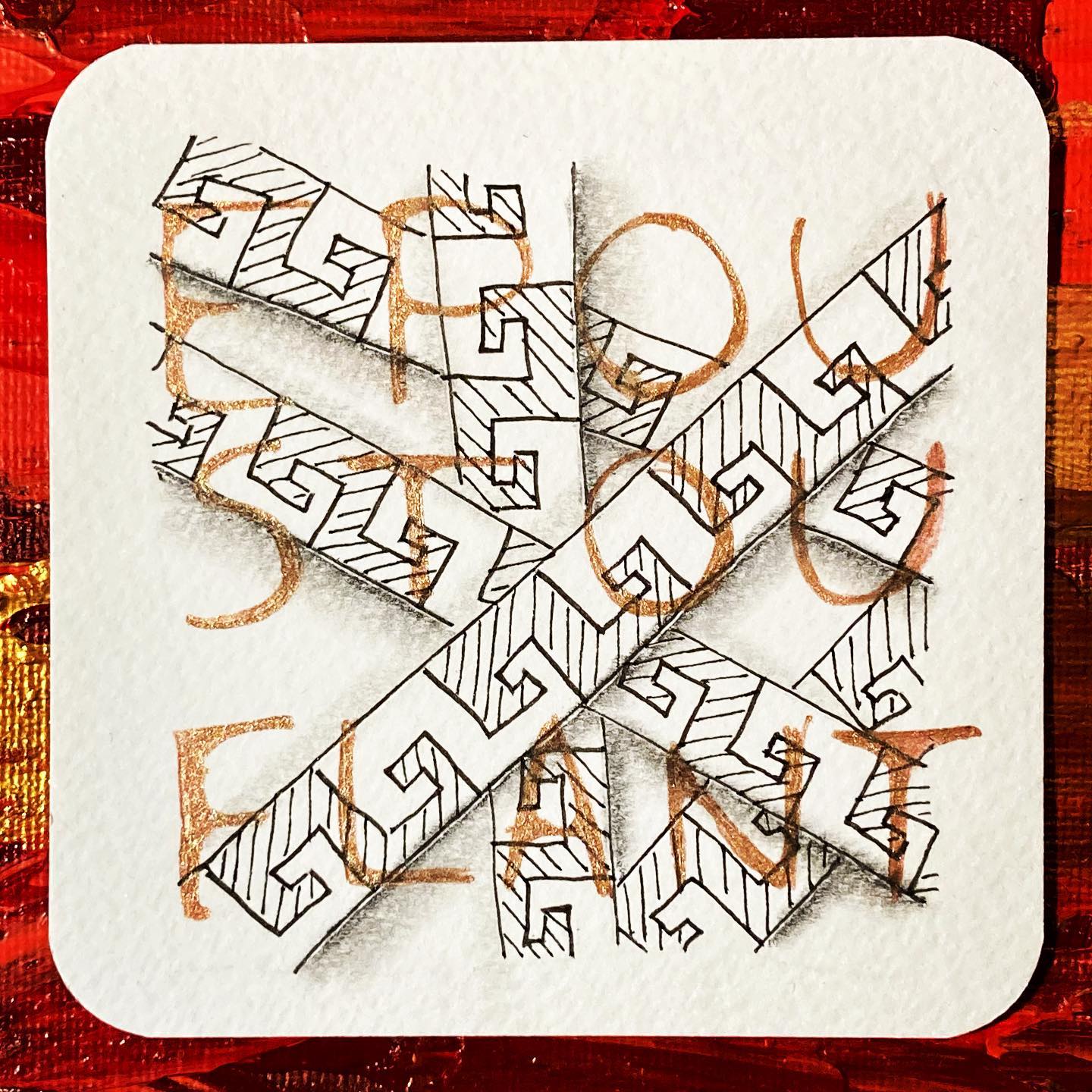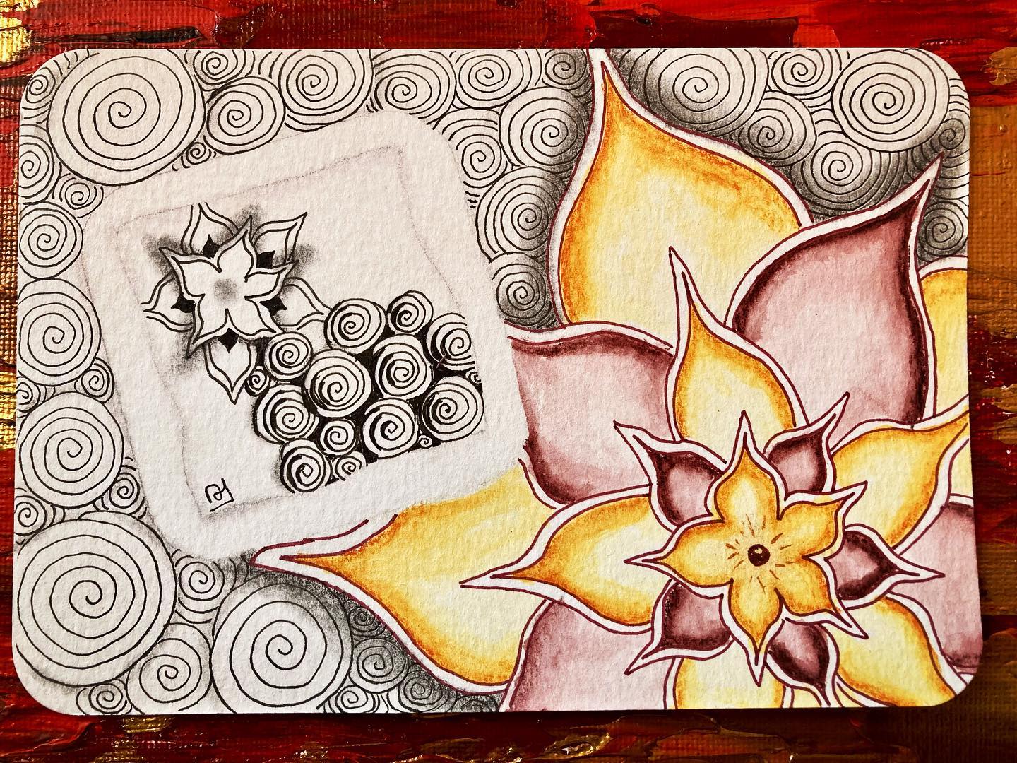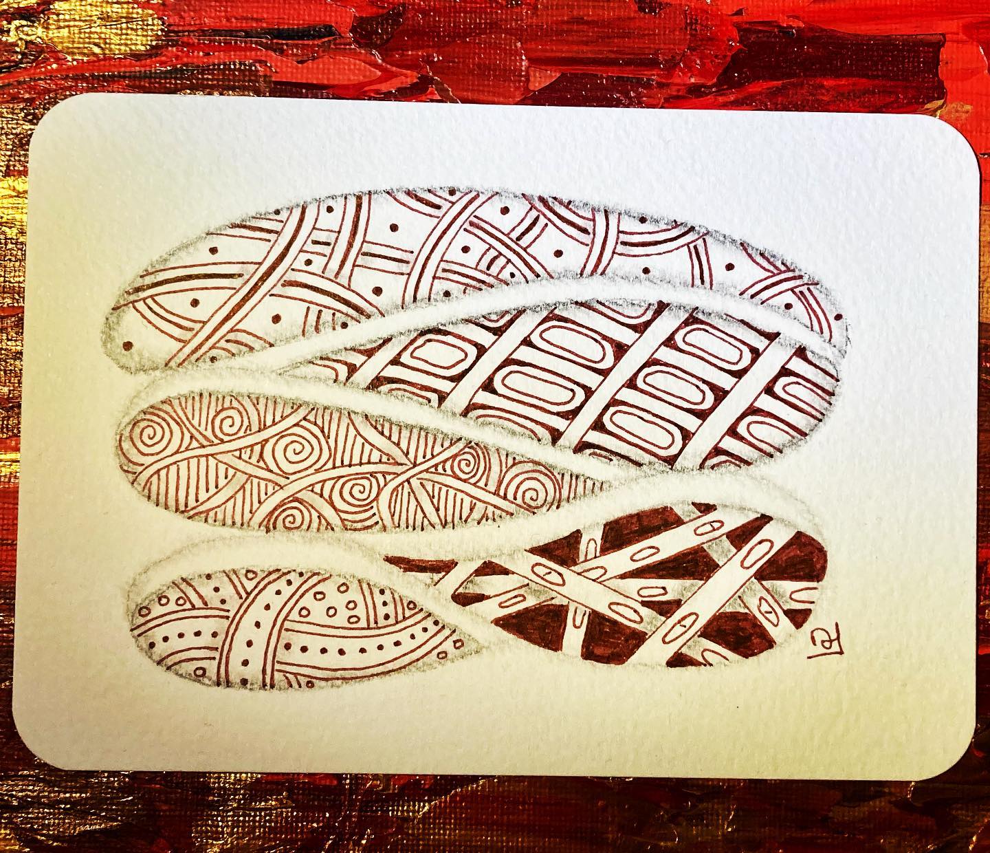 Je continue les ateliers proposés par JijiHook qui mêlent zentangle et création.