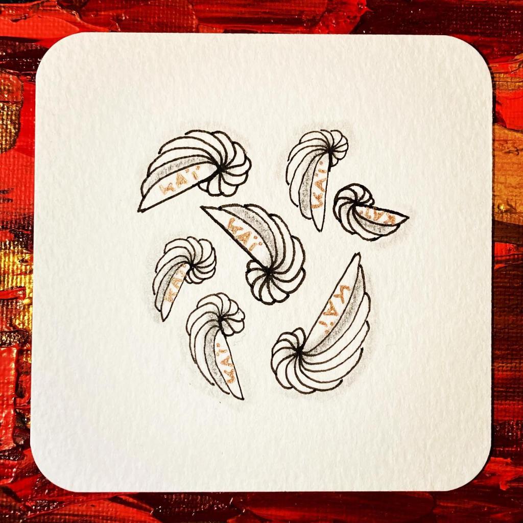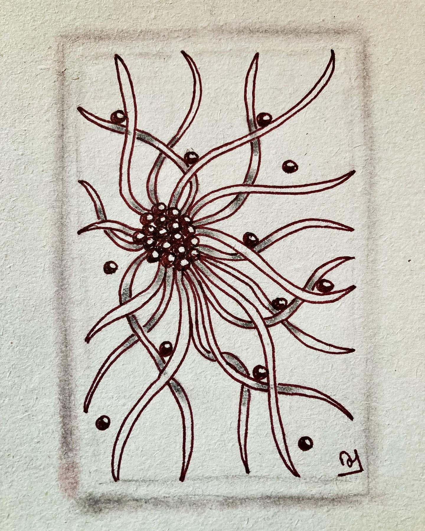 Cette tuile zentangle a été faite suite au challenge de Jiji Hook. Les consignes sont de choisir sur le site Tangle Patterns, des motifs commençant par nos initiales. J’ai donc découvert Morf, Helix et Florez que je ne connaissais pas.